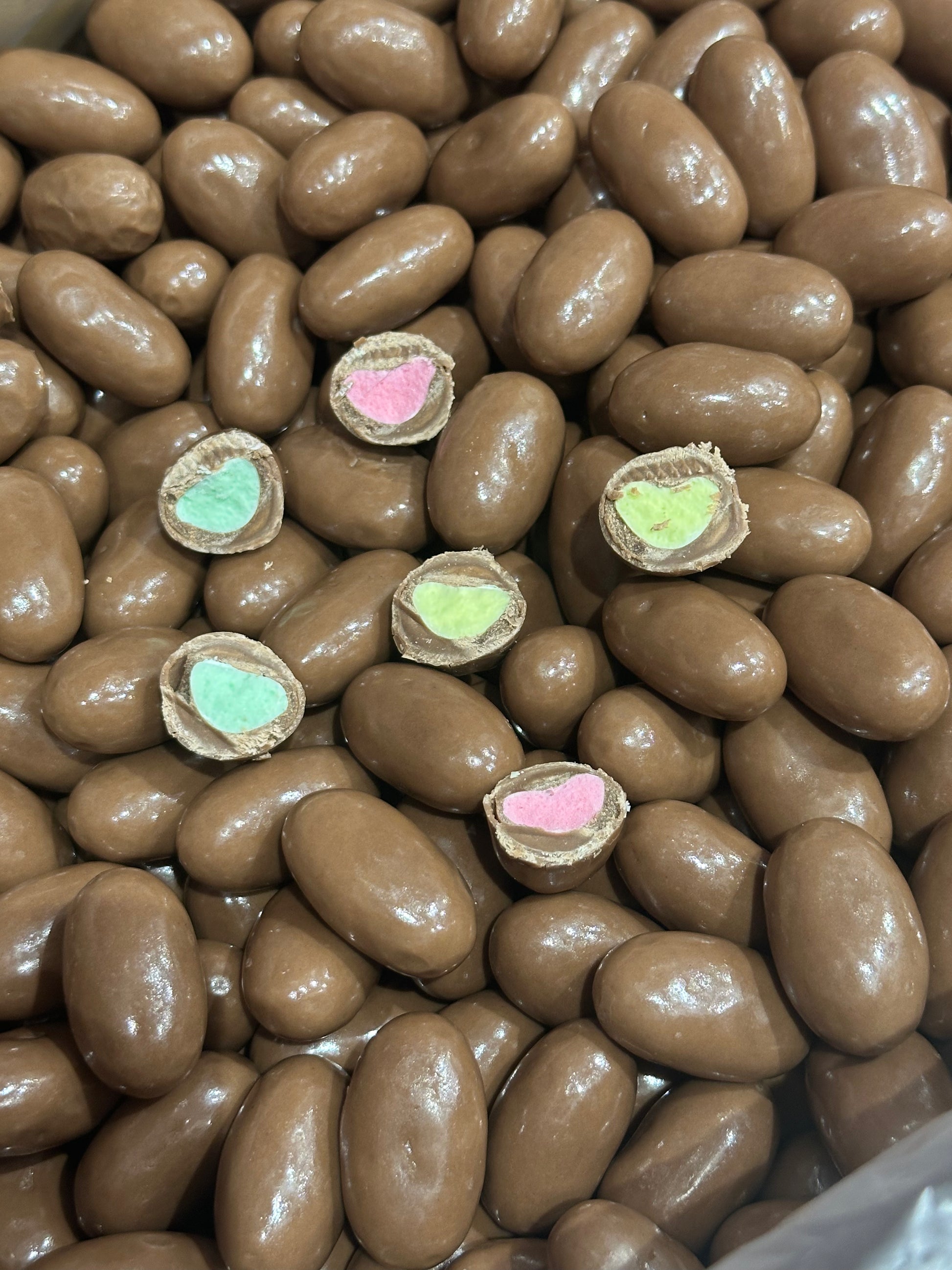 Clangers are our playful twist on the classic Clinkers – and they’re taking the candy world by storm! Each bite-sized candy is coated in creamy milk chocolate and hides one of four surprise colours inside: pink, green, yellow, or orange. But that’s not all – every colour comes with its own fruity burst of flavour: